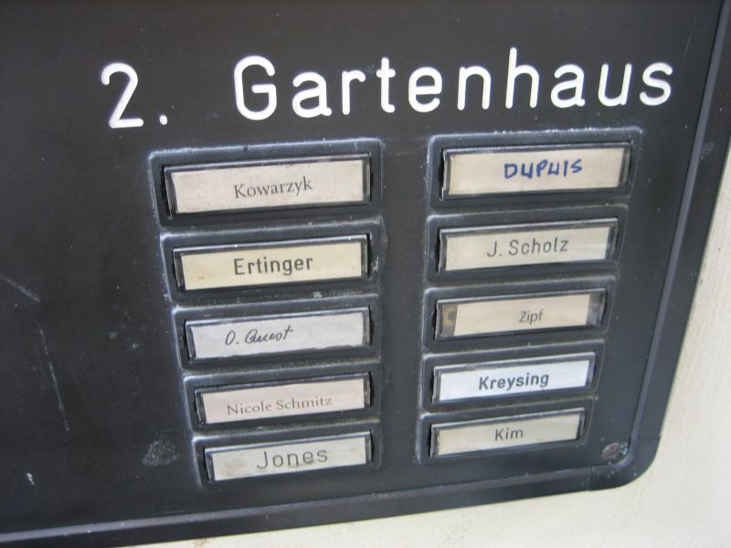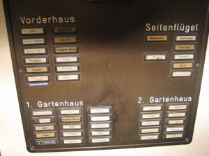 Donc c’est le panneau des sonneries à la porte de l’immeuble. Oh oh, mais qu’avons-nous en bas à droite?