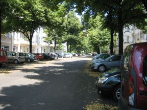 On peut presque voir mon immeuble, tout au fond à droite. En face (au fond à gauche), c’est un Schlecker, une petite pharmacie.