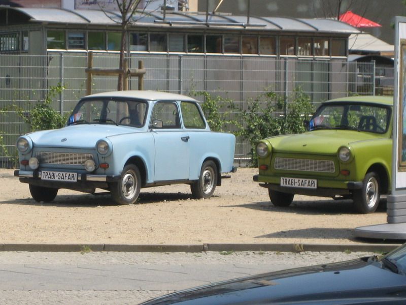 Trabant Power! Eh oui, ce sont 2 des Trabant que Trabi-Safari utilise. On est passés devant leur kiosque. J’en ai pas fini avec eux, ça non 😀