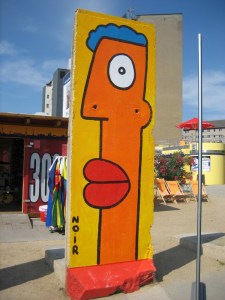 On sort du musée, et on se retrouve, après une petite marche, dans le coin de Checkpoint Charlie. Voici une des sections du mur qui a été récupérées par la ville (je suppose) et peintes par un artiste.