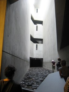 Y avait une oeuvre vraiment flyée à l’intérieur, « Le vide de la mémoire ». C’était tout plein de gros disques métalliques par terre, avec des trous dedans pour en faire comme des visages. L’artiste a spécifiquement demandé aux visiteurs de se promener sur les disques. Je l’ai fait, et ça fait un méchant bruit. Les faces représentent les victimes de l’Holocauste, et le coin sombre tout au fond (c’est une grande pièce) représente l’oubli, si je me souviens. En tout cas, c’était aussi différent qu’inattendu.