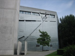 D’abord, ma journée. Tel que prévu, je suis allé au musée Juif. Sauf que j’ai pas pris la bonne rue et je me suis rallongé passablement. Parti à 10 h, je suis arrivé presque à midi! J’avais déjà un peu mon truck en arrivant. Cela dit, wow… C’est l’exemple par excellence du bâtiment qui transporte un message.