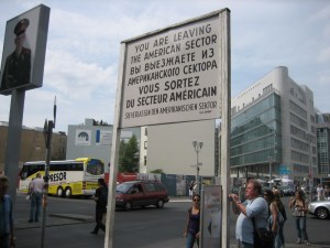 Je suis repassé dans le coin de Checkpoint Charlie, et fallait bien que je prenne cette photo-là, quand même. Maintenant plus rien n’est authentique, par contre. Le panneau est une réplique, la photo du soldat soviétique à gauche est un faux, tout comme celle du soldat américain l’autre coté.