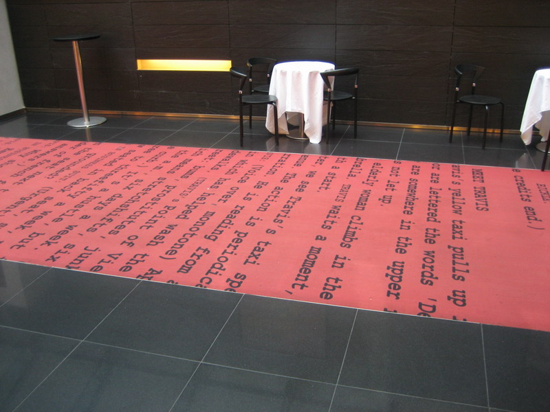 Le corridor menant aux cinémas. J’avais la salle 5. Sur le tapis, on peut voir du texte. Devinez de quel film ça vient?