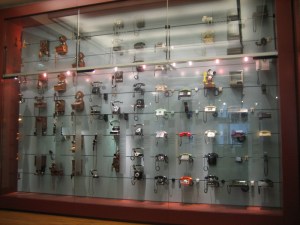 Et en voulez-vous, des résistances (à gauche, j’ai oublié le nom exact) et des vieux câbles (à droite)? Au fond, des appareils pour le morse, si je me souviens. Celui au fond à gauche avait des touches de piano qui correspondaient aux lettres, pour ceux qui connaissaient pas le code.