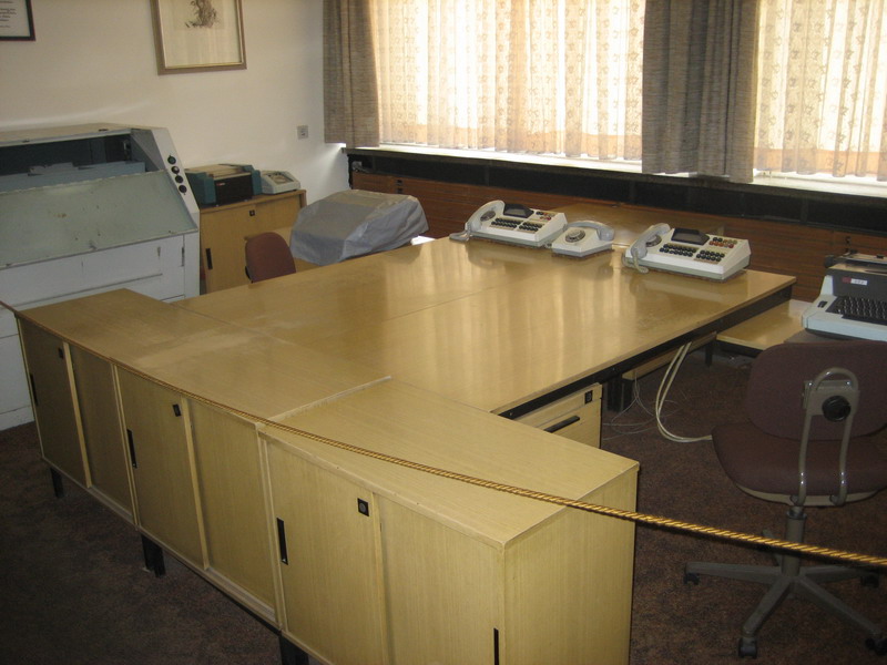 Donc je finis par arriver. Le 3e étage est l’exposition comme telle, et le 2e étage, c’est le bureau du directeur de longue date, Erich Mielke, laissé dans son état d’origine.