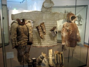 Dans la section « Indiens de l’Amérique du Nord », on parlait aussi des Inuit. Voici une partie de leur habillement. Le manteau quasi transparent est en fait un imperméable… fait d’intestin de phoque. Menoum menoum!