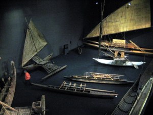 Section Océanie. Voici des embarcations que les indigènes utilisaient. Le seul bateau non original (reconstitué) est celui du fond. Tous les autres sont des originaux.