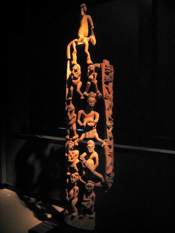 Encore de l’art africain. Je sais pas si le boss du musée a un sens de l’humour particulier, mais maudit qu’il faisait noir dans cette section-là! D’ailleurs, j’ai dû taponner pas mal les photos pour obtenir quelque chose de potable. Eh que vous êtes donc traités aux petits oignons!