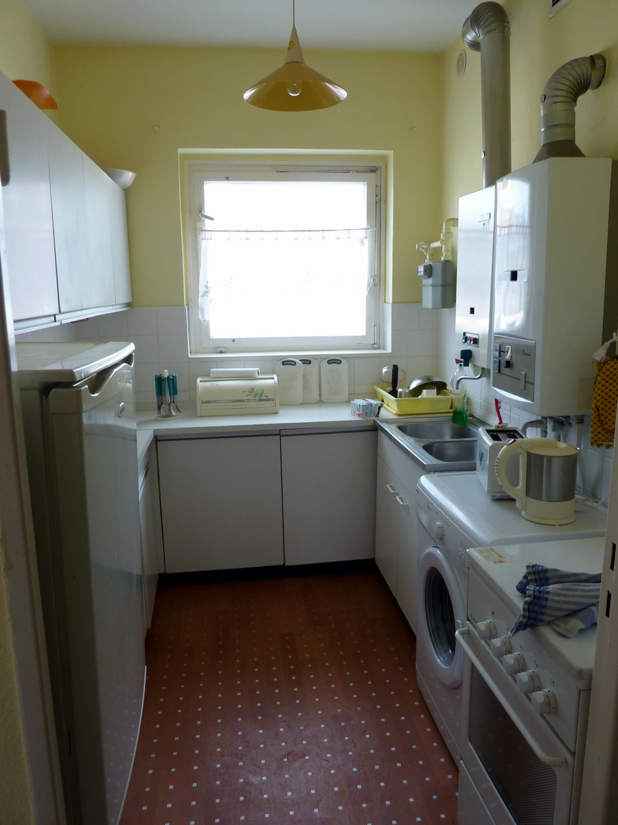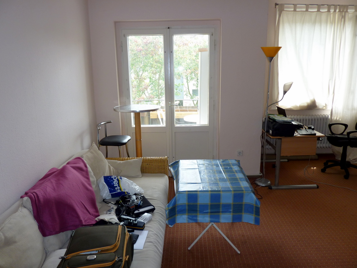 Spartiate comme table à dîner, mais bof. Et une table de Stehcafé (café où on boit/mange debout) à l'arrière-plan en prime!