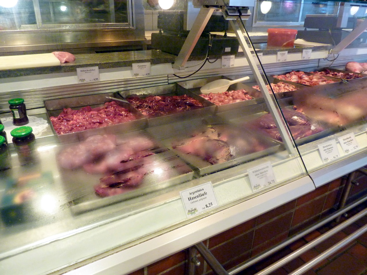 Section charcuterie. Ils ont du lièvre d'Argentine (entre autres), et toutes les parties imaginables en plus! (C'est la condensation qui embue les vitres -- je ne censure rien!)
