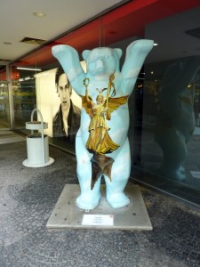 Petit détour pour faire des commissions après l'aéroport. Ah ben vla-ti-pas un Buddy Bear avec la statue de la Colonne de la Victoire dessus! Très réussi, je dois dire.
