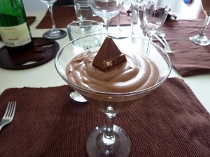 Whooooooa. Le dessert. Mousse au chocolat, à base de Tobblerone avec un peu de chocolat noir. Le tout couronné d'un morceau de Tobblerone. JOUISSIF, rien de moins!