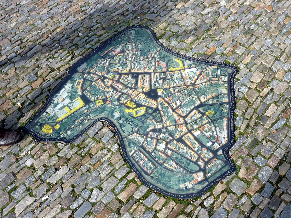 - Il y a des cartes de la ville dans le trottoir! / Maps of the old town in the sidewalk!