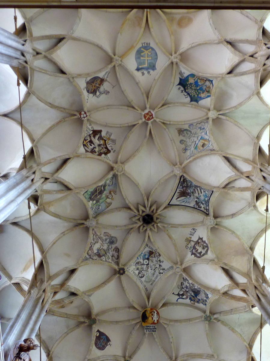 - Autre vue du plafond. Les armoiries de différentes familles. / Another shot of the ceiling. The coat of arms of several families.