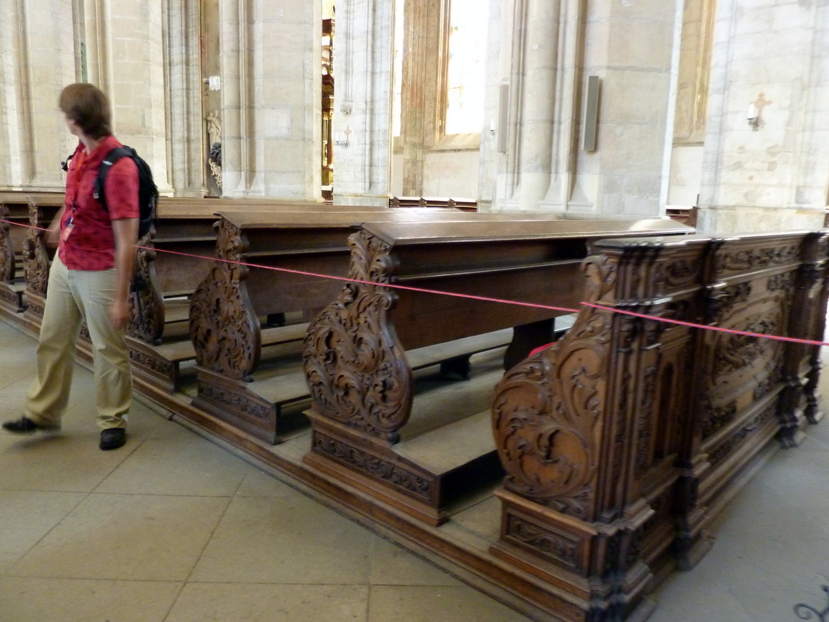 - Ces bancs datent de 500 ans, et ont tous un motif différent. / Those pews are 500 years old and have all different engravings.
