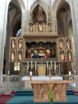 - L’autel. Notez la scène inhabituelle (dernière Cène) pour un autel. / The altar. Note the unusual scene (Last Supper) for an altar.