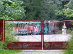 - Vu à travers la clôture, un chemin de fer pour le train d’enfants. / Seen through the fence, train tracks for kids.