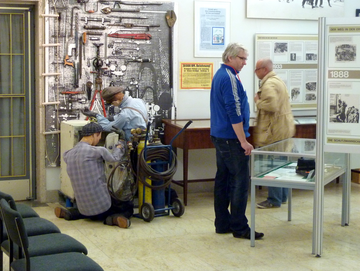 Brèves impressions sur le musée de la police : ce serait un 10/10 s’il y avait plus (c.-à-d. plus de ZÉRO) matériel en anglais. Malheureusement, tout est en allemand, et j’ai beau vouloir, mais à un moment donné ma tête allait exploser. Il y avait aussi une exposition temporaire sur les ex-Est-allemands qui se sauvaient en Autriche par la Hongrie. Là, tout était bilingue… en allemand et en hongrois!