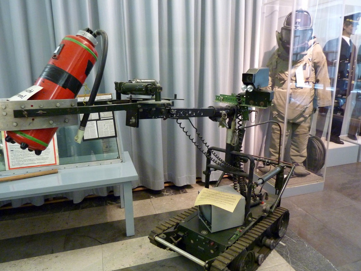 - Le robot pour l’escouade anti-bombe. / The robot for the bomb squad.