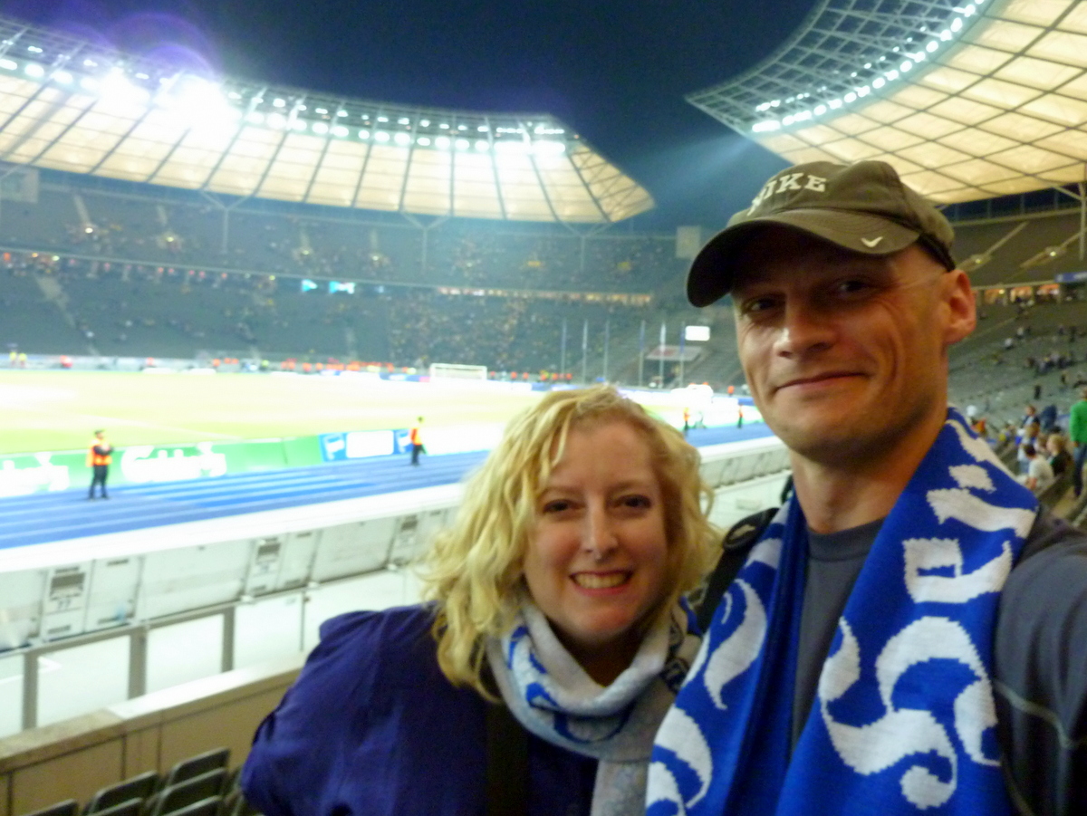Heureusement, j’ai pu revenir à temps pour prendre une douche… avant d’aller à un match de soccer! Hertha BSC vs. Dynamo Dresden! Pas mon premier match ici (lisez ce blog pour un autre match au Olympiastadion, un match à la Alter Försterei — un match du FC Union Berlin — et un match à Split, en Croatie!).