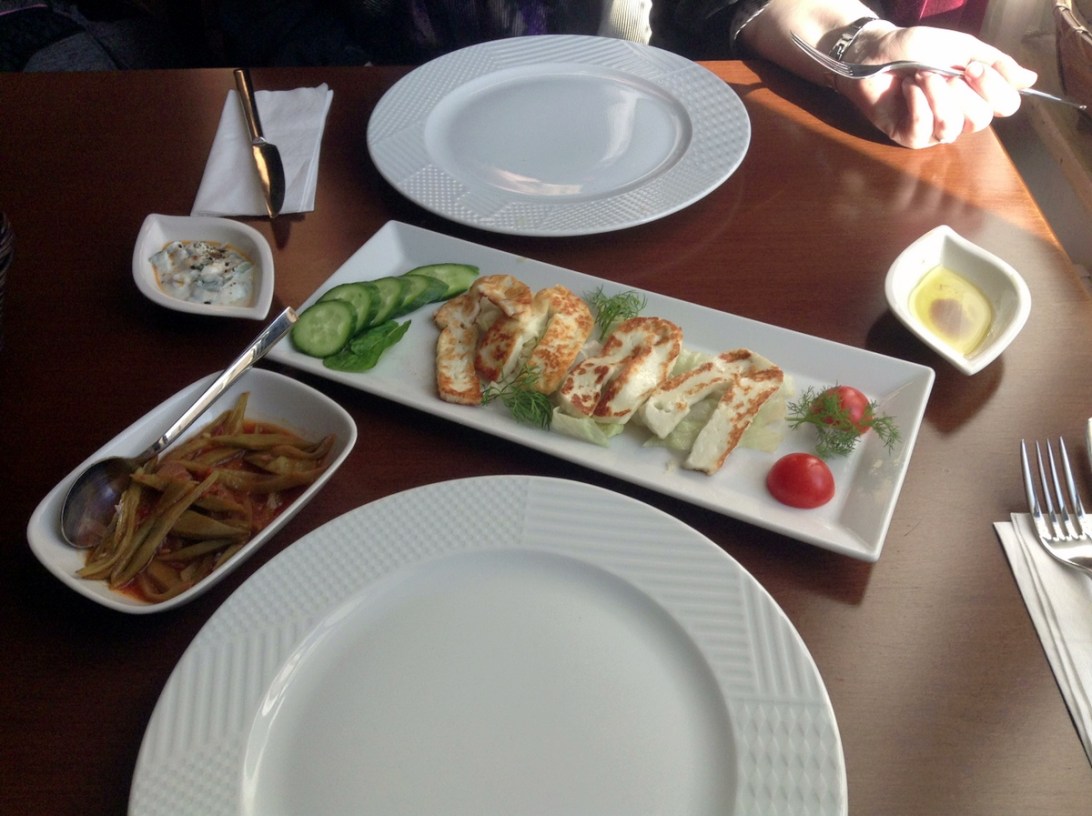 Retour près de l’appart, souper au resto Falls in Galata. ÉCOEURANT! (entrée : fromage Halloumi) / Back near the apartment, dinner nearby at « Falls in Galata ». AWESOME PLACE! (appetizer: Hellumi cheese)