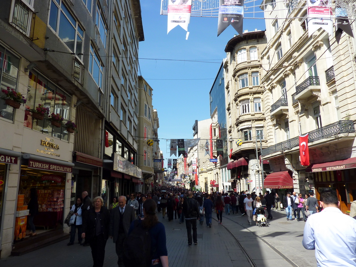 Nous sommes sur l’avenue Istiklal, la grande avenue piétonnière de la ville. / Istiklal Avenue, the big pedestrian street here.
