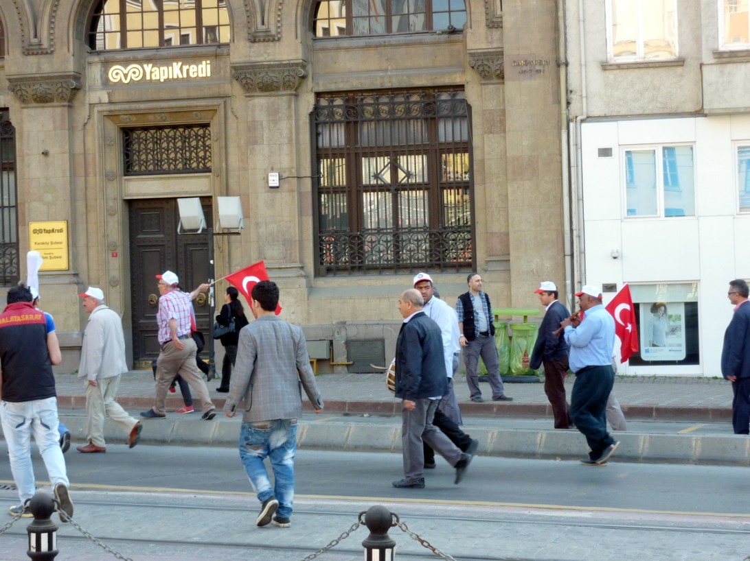 En route vers le tram (et le palais Dolmabahçe), je vois plusieurs groupements et manifestations… Meh, ça fera aucune différence lorsque j’arriverai à la station près du pont… / On my way to the tram station, I see many groups demonstrating… Meh, won’t make any difference once I get to the station near the bridge…
