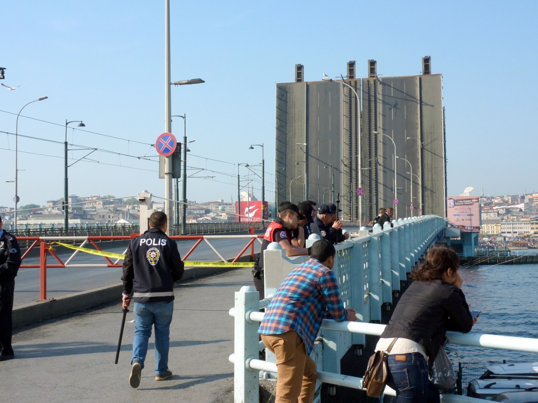 Le pont est fermé, bloqué! La station barrée aussi. Et la rue d’à côté! Le seul moyen de traverser est par bateau, ugh. Ça ne vaut pas le coup. Les deux policiers à qui j’ai parlé ne parlaient pas suffisamment anglais pour m’expliquer pourquoi c’était barré. / The bridge is closed off! The tram stop as well. The street next to it too! The only way across is by ferry, ugh. Not worth it. The two cops I talked to didn’t speak enough English to tell me what was going on…