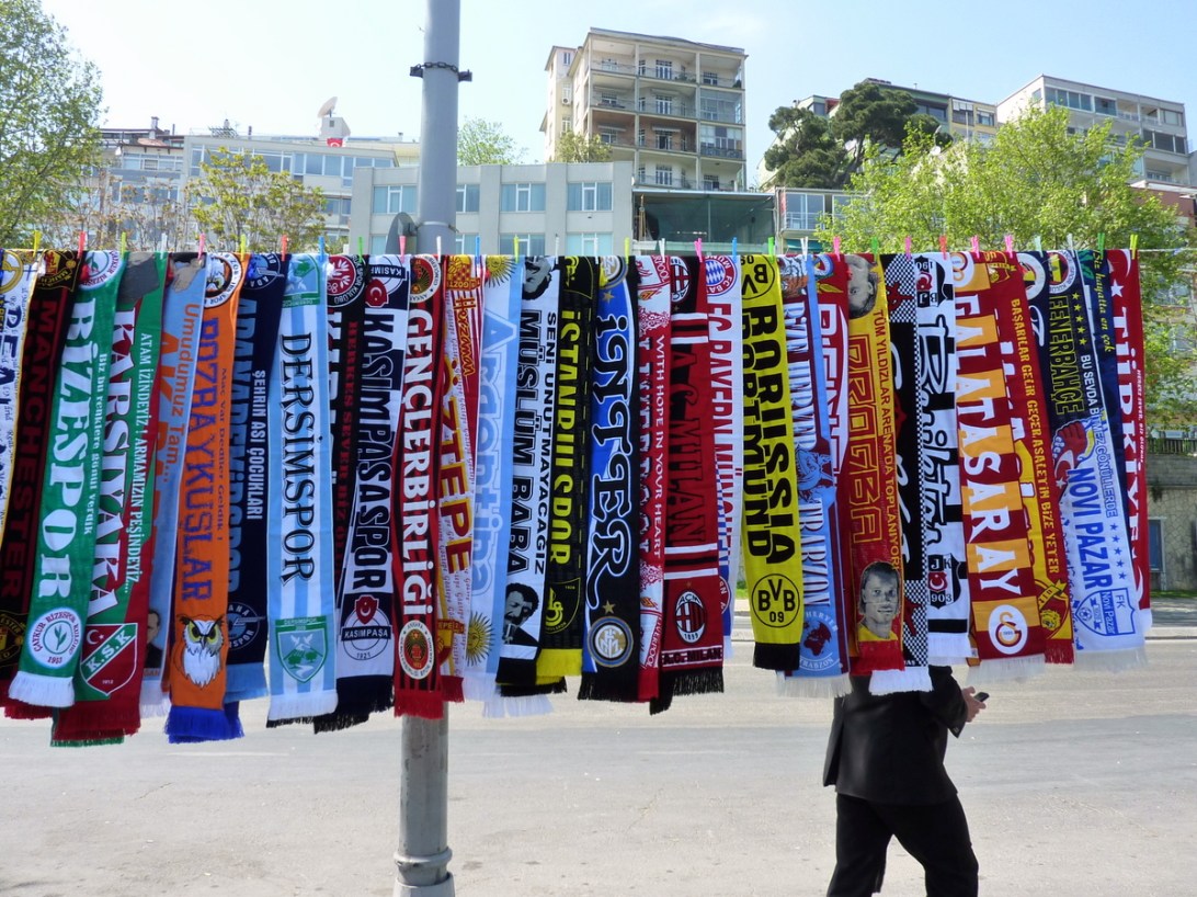 Yes! Des foulards de différentes équipes! Je m’en suis pris un du Fenerbahçe (que je voulais aller voir, mais tous les billets étaient vendus). / YES! Scarves of many teams! I got one of Fenerbahçe (wanted to go to a game, but it was sold out).