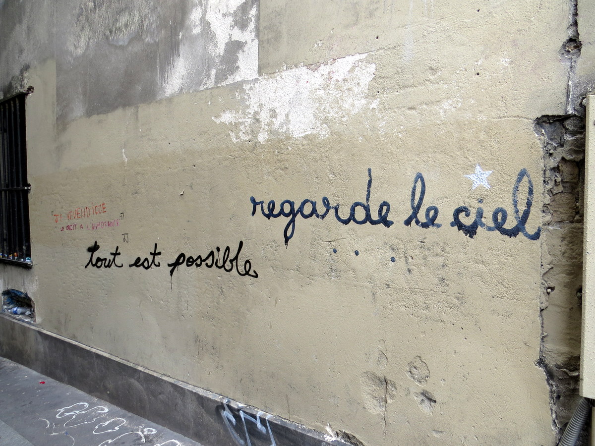 Un éternel optimiste. / An eternal optimist (« Everything is possible — look at the sky (stars? heavens?) »)
