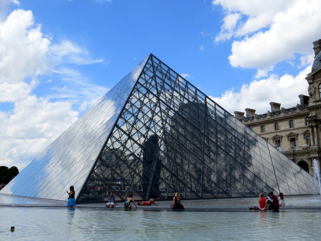 La pyramide conçue par I.M. Pei, qui avait aussi conçu la spirale du musée d’histoire allemande à Berlin. / The pyramid designed by I.M. Pei, who also did the spiral at the German History Museum in Berlin.