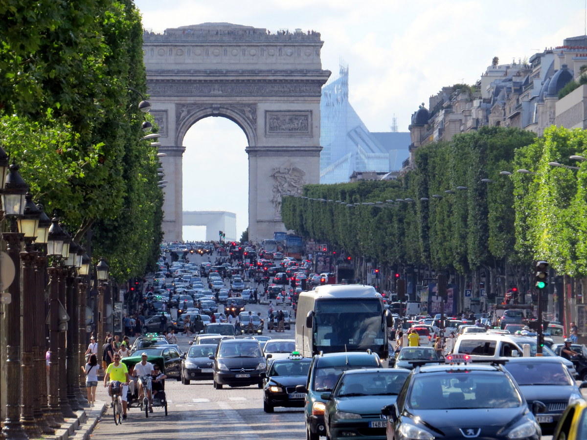Les Champs-Élysées, et le vrai Arc de Triomphe. / The Champs-Élysées, and the real Arc de triomphe.