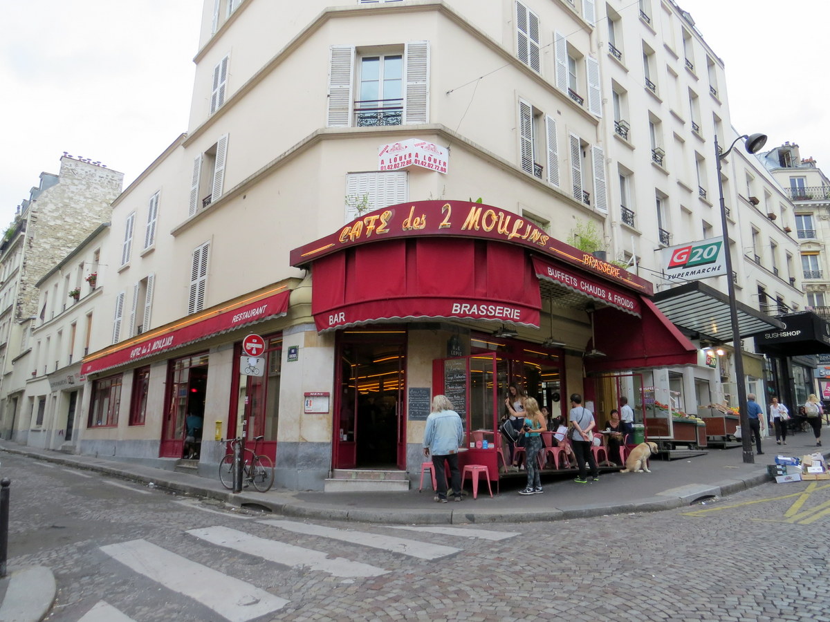 Le Café des 2 Moulins, important lieu dans le film Le fabuleux destin d’Amélie Poulain. / The Café des 2 Moulins, one of the main settings in the movie Amelie.