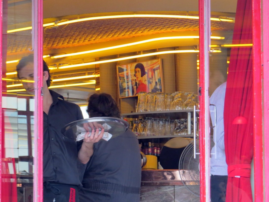 Il y a encore quelques images du film à l’intérieur. À gauche, notre serveur, un sosie de Vincent Perez. / There still are a few pictures from the movie inside. On the left, our waiter, a Vincent Perez lookalike.