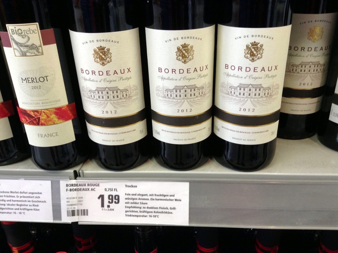 Yup, 2 euros (2,80 $CAN) pour un Bordeaux. / Yup, 2 euros ($CAN 2.80) for a Bordeaux.