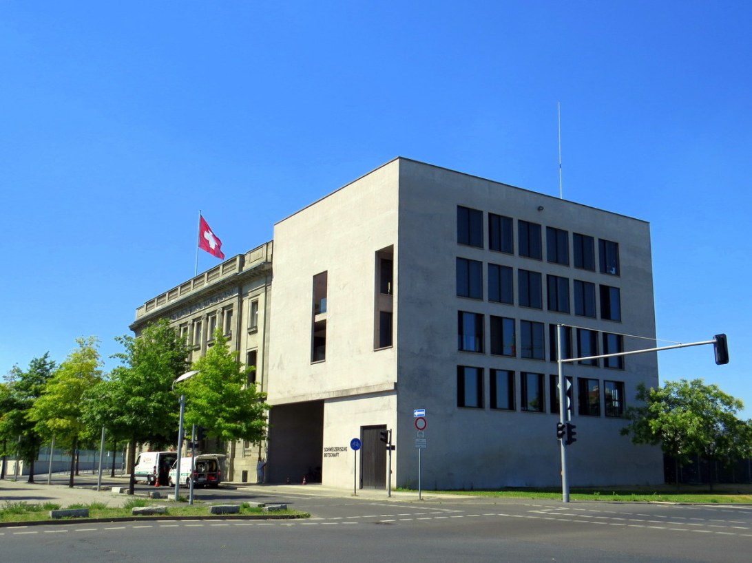 Près de là, l’ambassade suisse. / Nearby, the Swiss embassy.