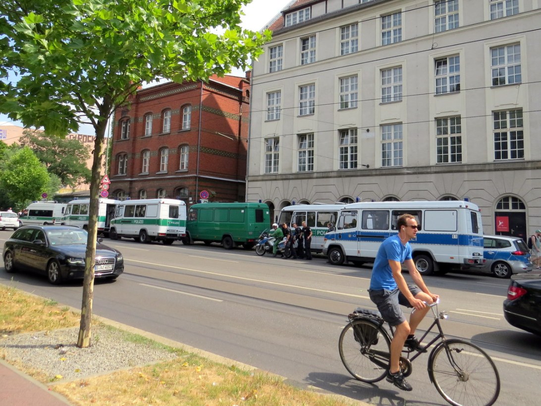 Sur la route du stade. La présence policière est forte. / On our way to the stadium. The police is out in force.