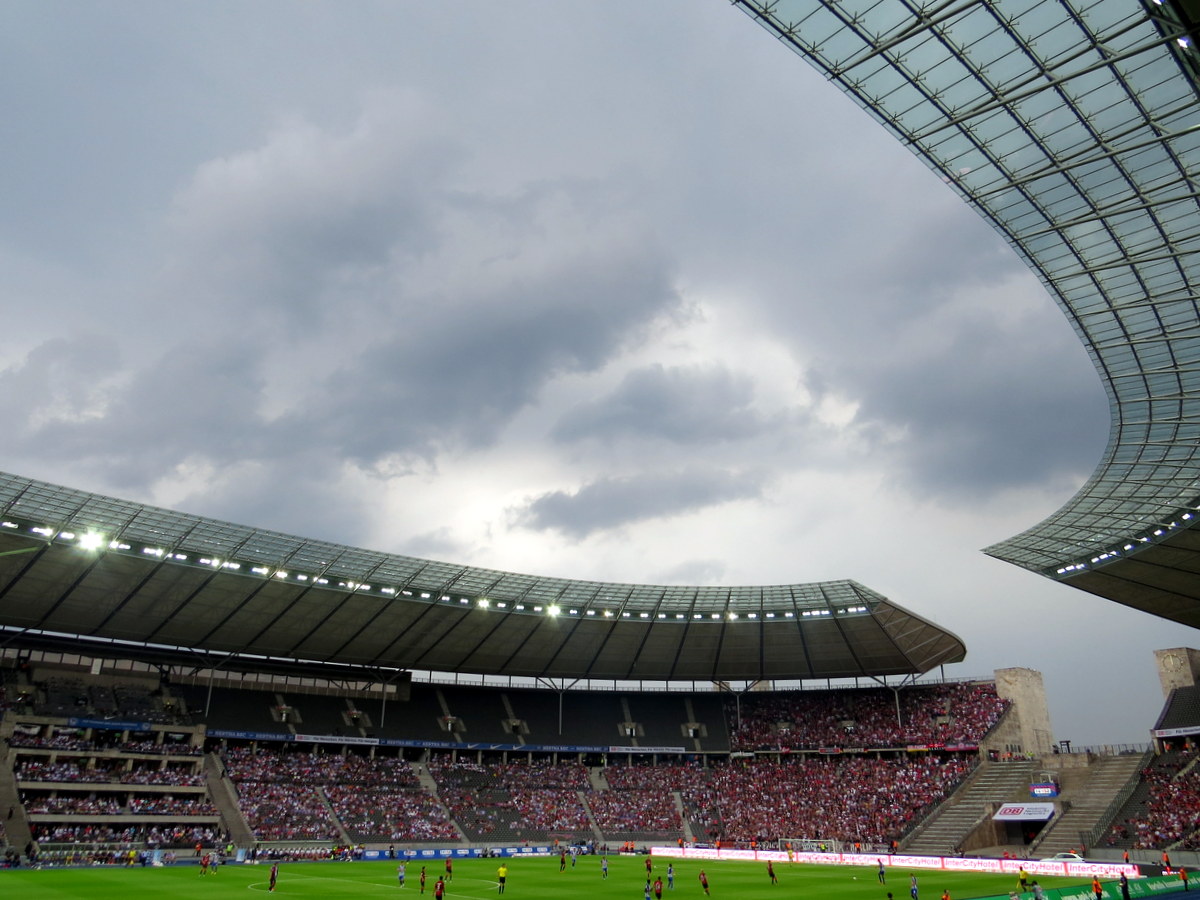 Début de match frénétique! Hertha frappe le poteau deux fois dans les 10 premières minutes! Et ça se couvre… / Crazy start! Hertha hits the post twice (or one post + one crossbar? Not sure) in the first 10 minutes! But the sky’s getting darker…