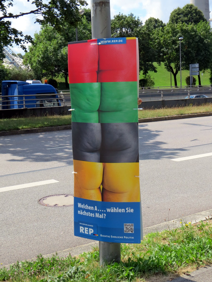 Haha. « Pour quel (trou de) cul allez-vous voter aux prochaines élections? / For which ass are you going to vote next?