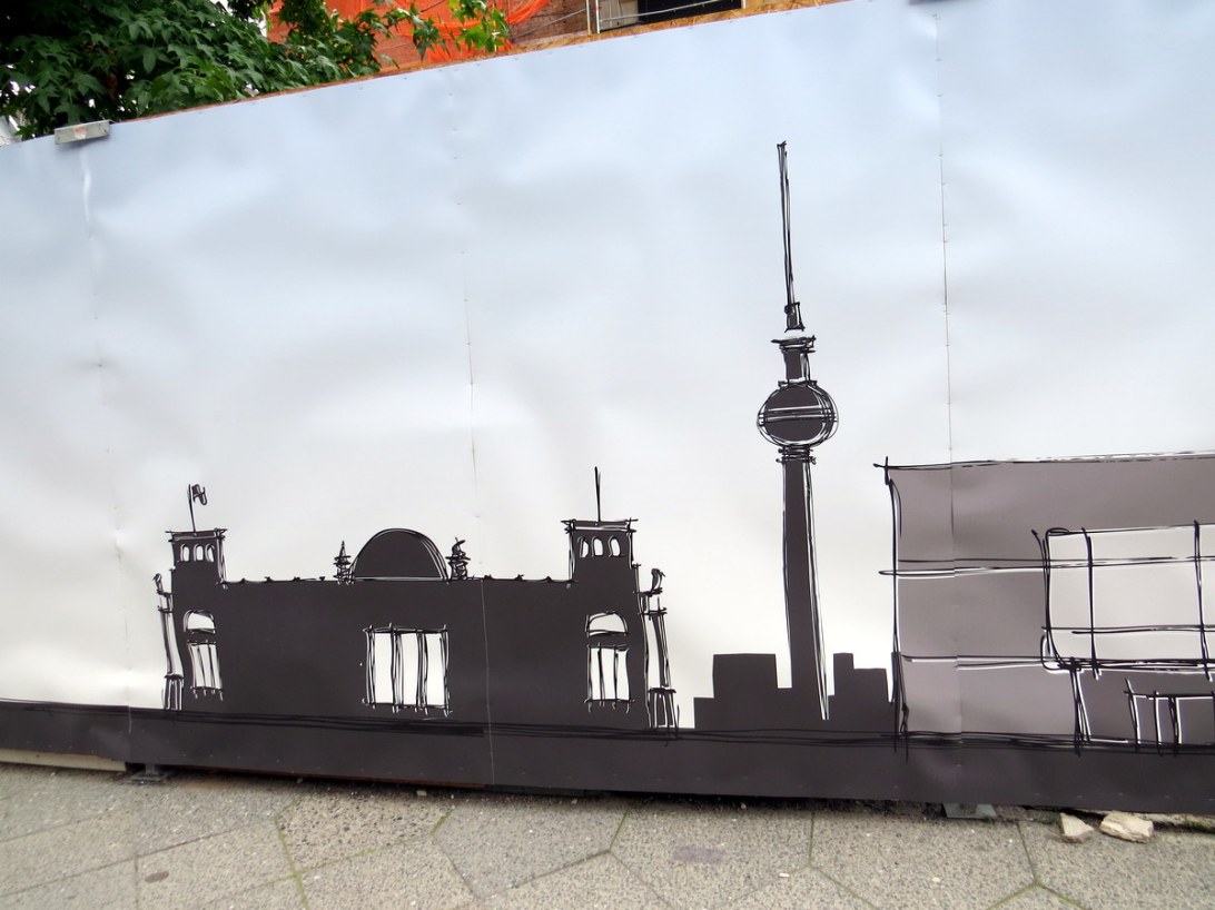 De l’autre côté de la rue, une toile qui ressemble à notre décoration murale. / Across the street, some art that resembles our mural decoration at home!