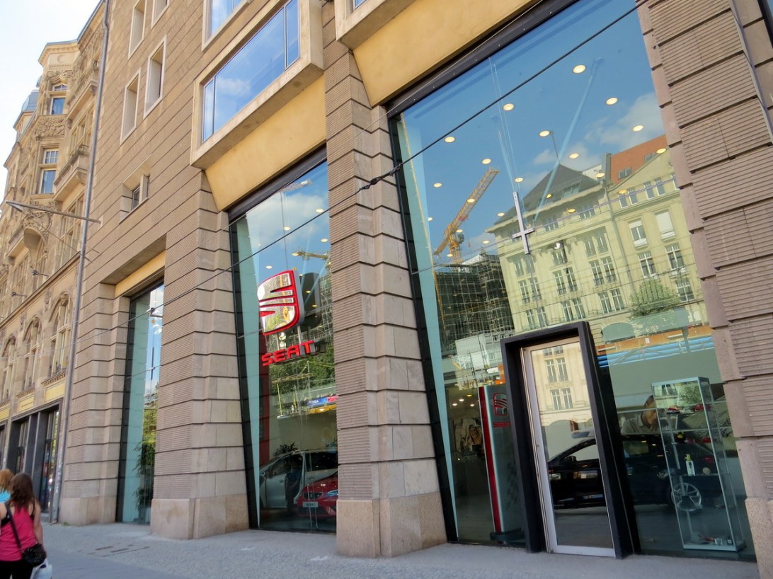 Sur Unter den Linden. Il y a un détaillant Mercedes et Ferrari (je crois), et il y a aussi Seat… / On Unter den Linden, you have a Mercedes and a Ferrari dealer. You also have Seat…
