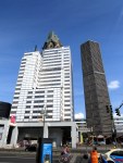 - À l’extérieur, voici le bâtiment où se trouve le Panorama Punkt. / Just outside the Sony Center, across the street, that’s the building where Panorama Punkt is.