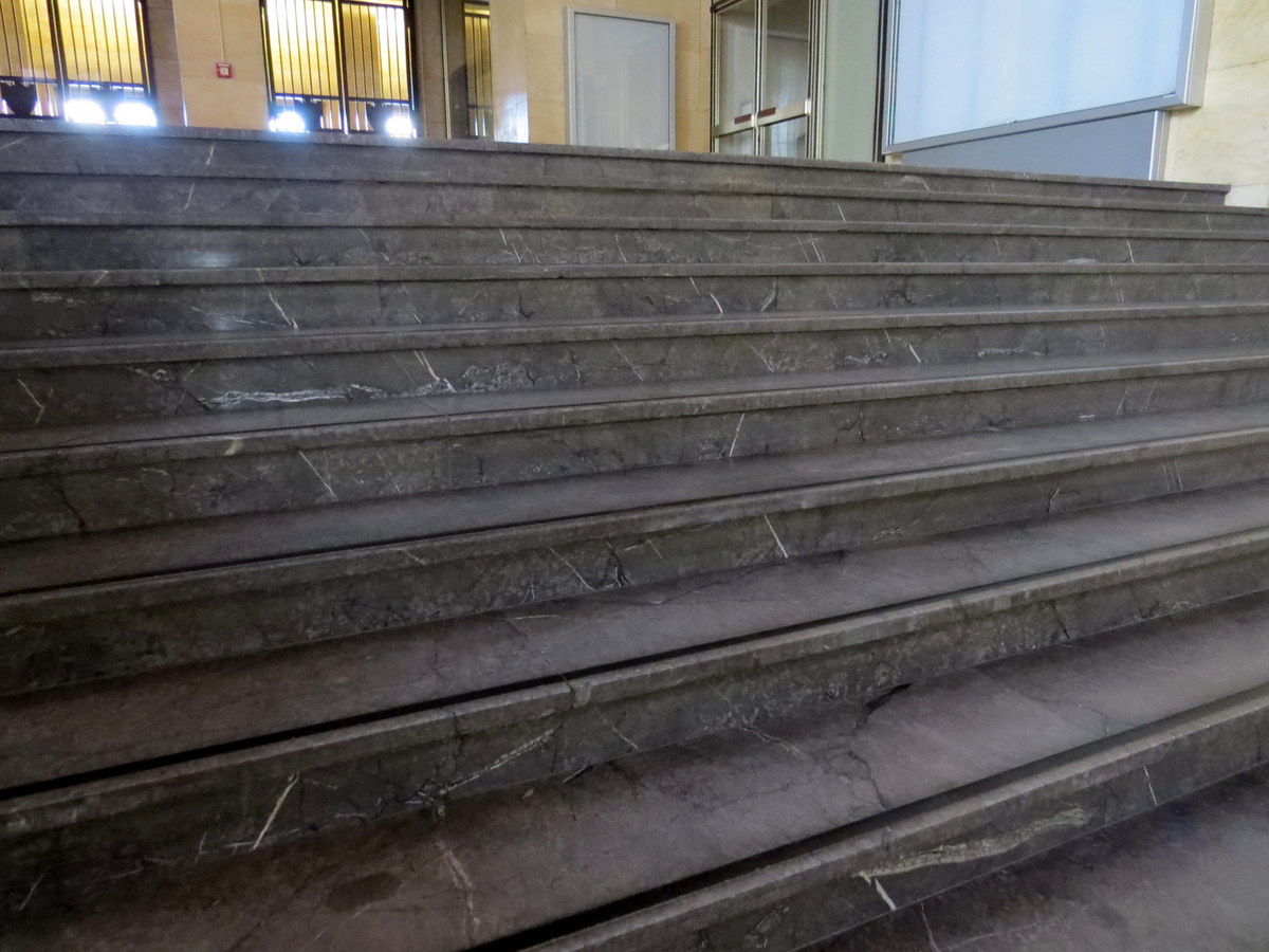 À l’autre extrémité, des escaliers de marbre. / At the other end, marble steps.