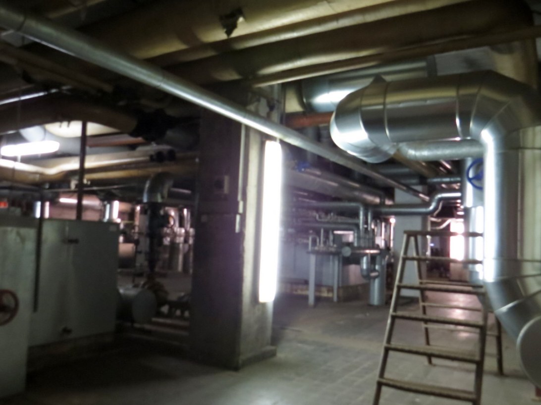 La zone de machinerie (sous-sol) couvre presque toute la surface du bâtiment. / The machinery (basement) covers almost the entire building area.