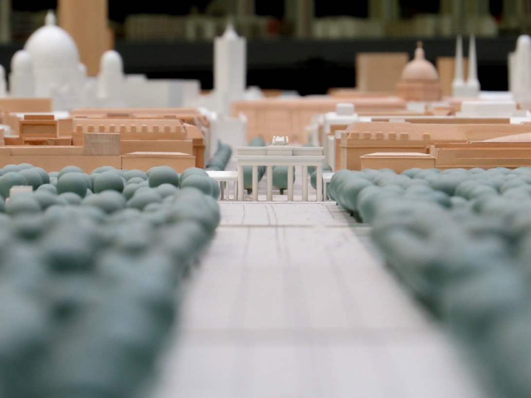 La Strasse des 17. Juni, avec le parc du Tiergarten de chaque côté. Derrière la porte, Unter den Linden. / The Strasse des 17. Juni, with the Tiergarten Park on each side. Behind the Gate, Unter den Linden.