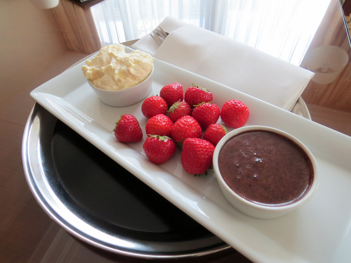 Ils sont même venus nous porter ceci! Fraises, crème fouettée et chocolat. Yum! / They even came by and gave us this! Strawberries, whipped cream and chocolate. Yum!