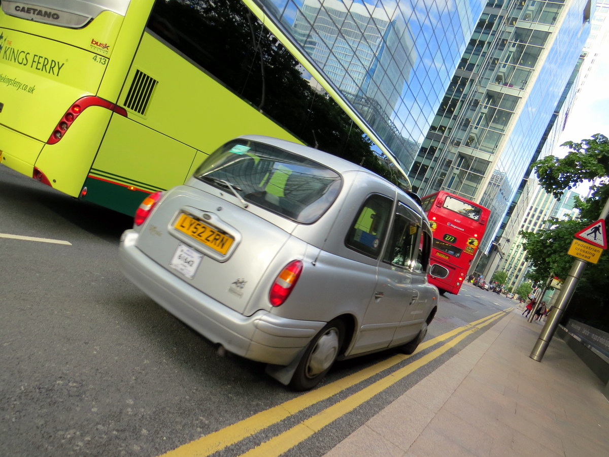 Bien sûr, un taxi londonien, gris cette fois-ci. / A London cab, of course. This time grey.