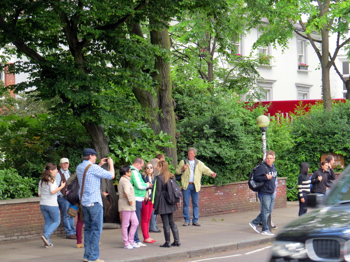 C’est beaucoup plus passant qu’on croit. Il y a des autobus de la ville, des camions de livraison, etc. Et aucun feu de circulation! Les pauvres automobilistes doivent composer avec des piétons qui font des poses. / That crossing is a lot busier than we’d think. There are city buses, delivery trucks, etc. And no traffic lights! The poor drivers have to deal with moron tourists striking poses.