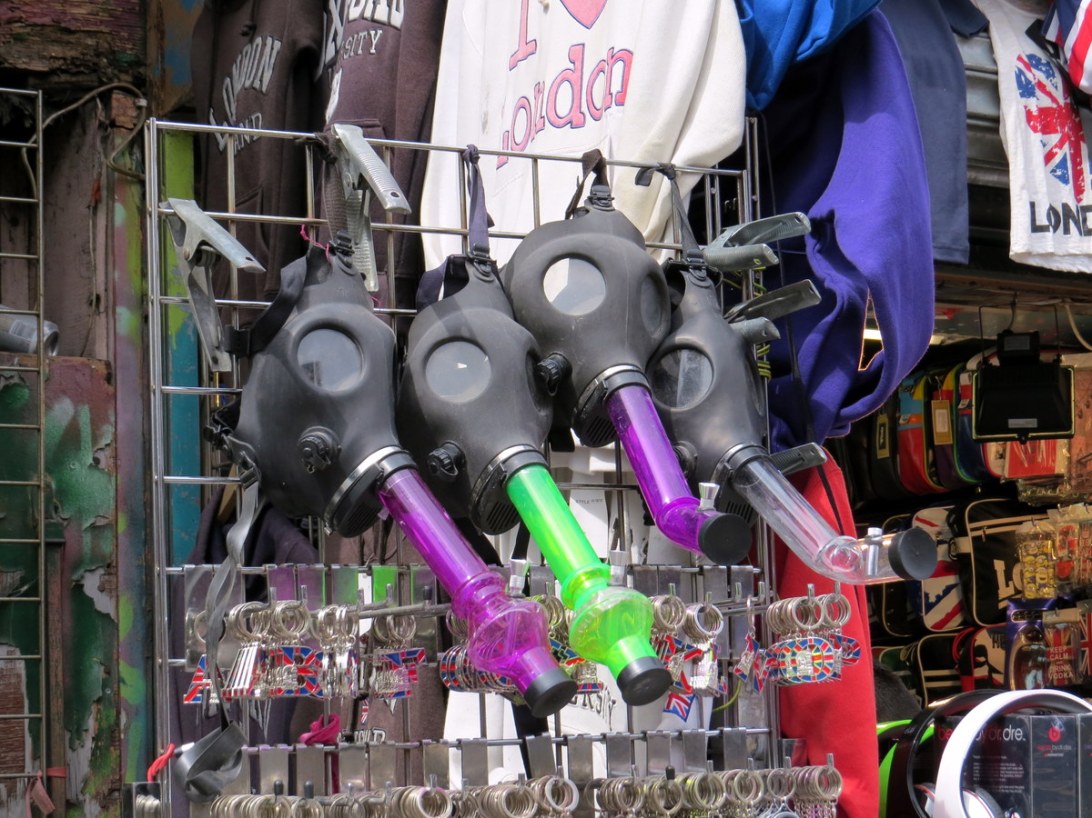 Des masques à gaz avec bong intégré. Pas mal! / Gas masks with built-in bongs. Not bad!